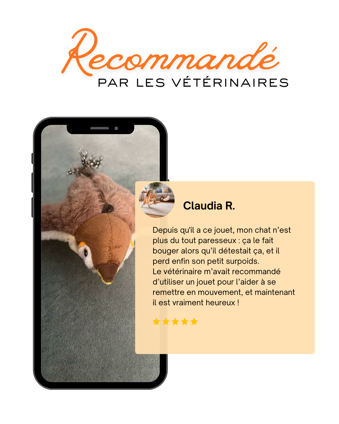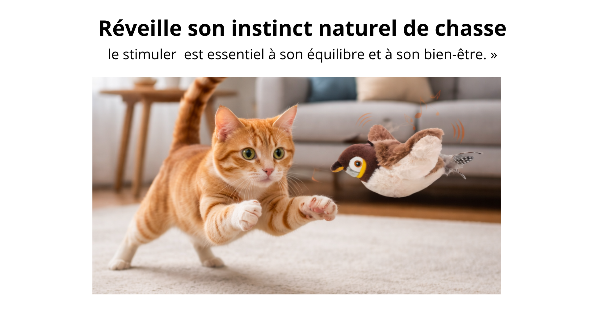 il bat des ailes, émet des sons réalistes et déclenche instantanément la curiosité naturelle de votre chat.